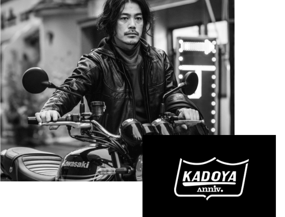 在1935年創立於東京淺草區的Kadoya,在二戰後為東京警視廳提供警用皮衣,可謂是日本機車騎士皮衣的先驅。到了80年代,由於機車賽事的蓬勃發展,市場上對騎士皮衣的需求激增,使得Kadoya順勢成為騎士皮革製品供應者當中的權威。超過75年的歲月裡,Kadoya秉持的「競賽精神與工藝本位」原則,從未改變過。雖然Kadoya瞭解皮革部品必須隨機車和騎士風尚的演進而改良,但這需要靠傳統、技藝和品質的支持方能成就。這種時間累積的傳承,正是Kadoya本身最珍貴的資產。