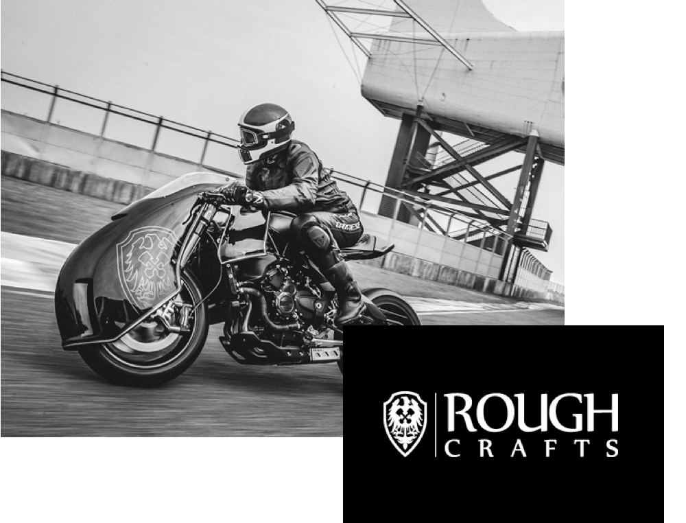 來自台灣首屈一指的手工改裝精品品牌ROUGH CRAFTS是由Winston Yeh於2009年時所創立,曾於2013年AMD世界手工改裝車大賽的哈雷組別拿下世界冠軍,以黑化奢華美學聞名全球的ROUGH CRAFTS從經典設計中汲取元素、再加入自己的變化及現代製程,從整車訂製到單品改裝,從高階碳纖維帽款到生活化的服飾配件,其質感與無可比擬的氣場絕對能讓你感到驚艷